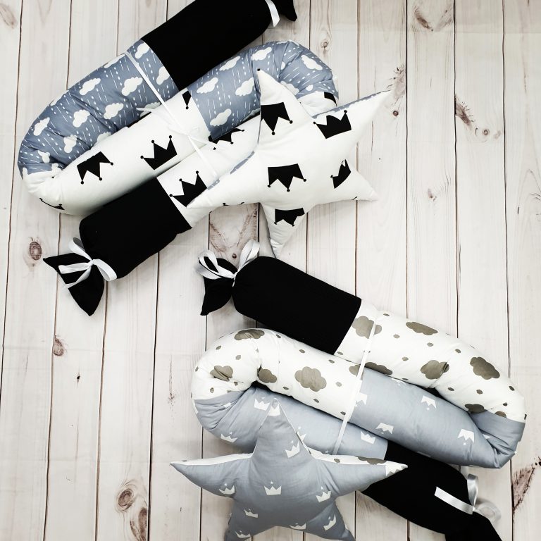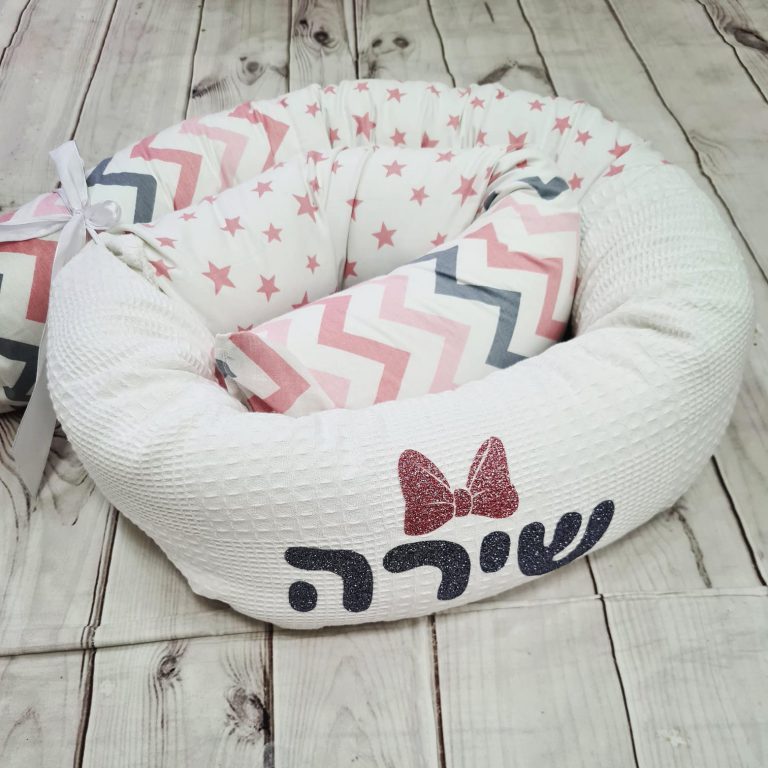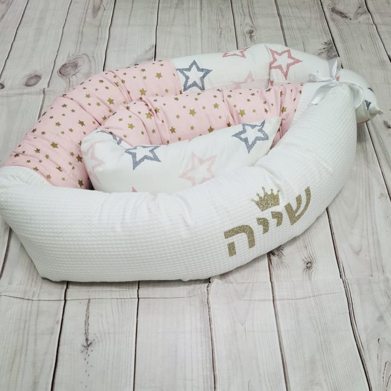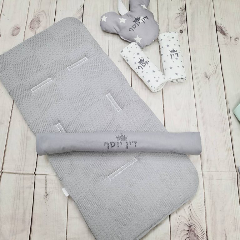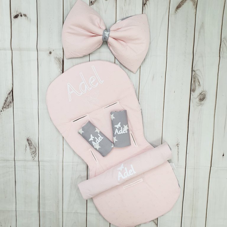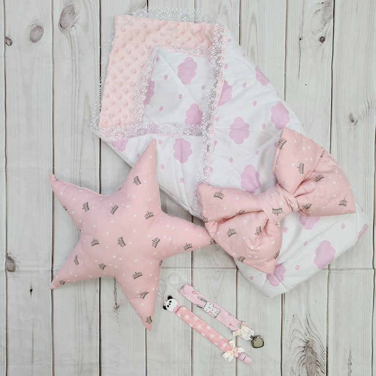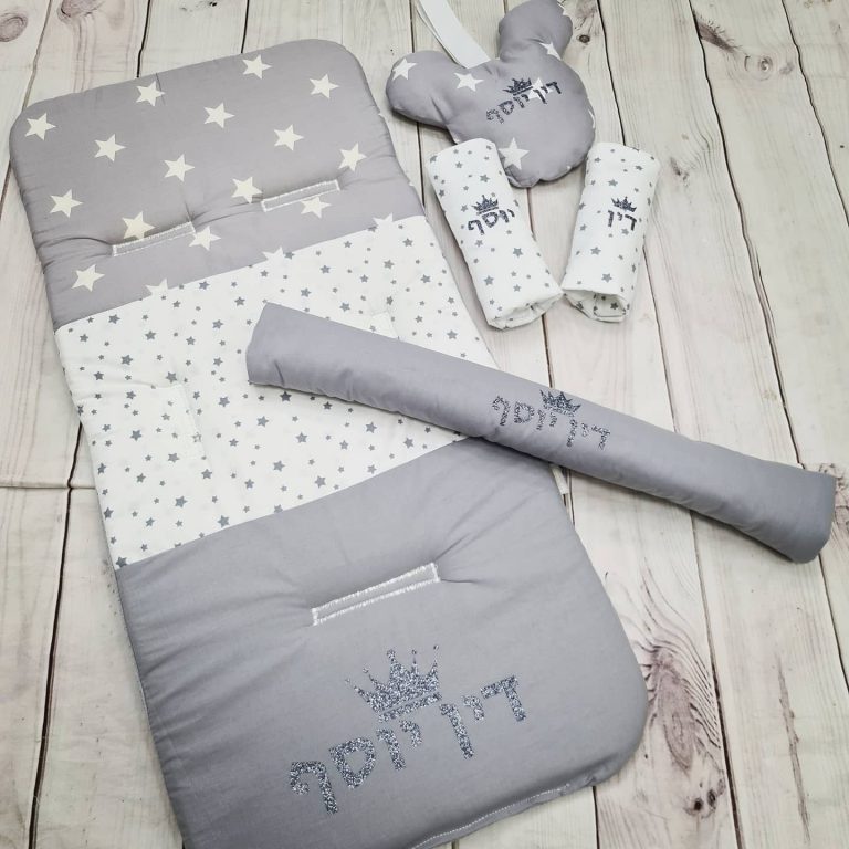 סט לעגלה – ורוד פודרה ואפור כוכבים
