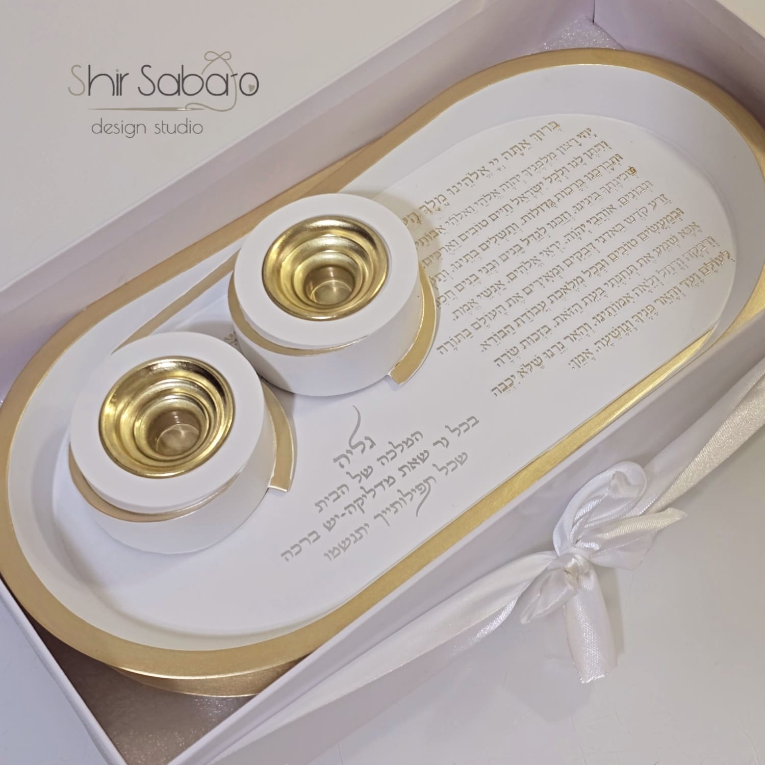 היה הראשון לכתוב סקירה “מגש להדלקת נרות לבן וזהב”