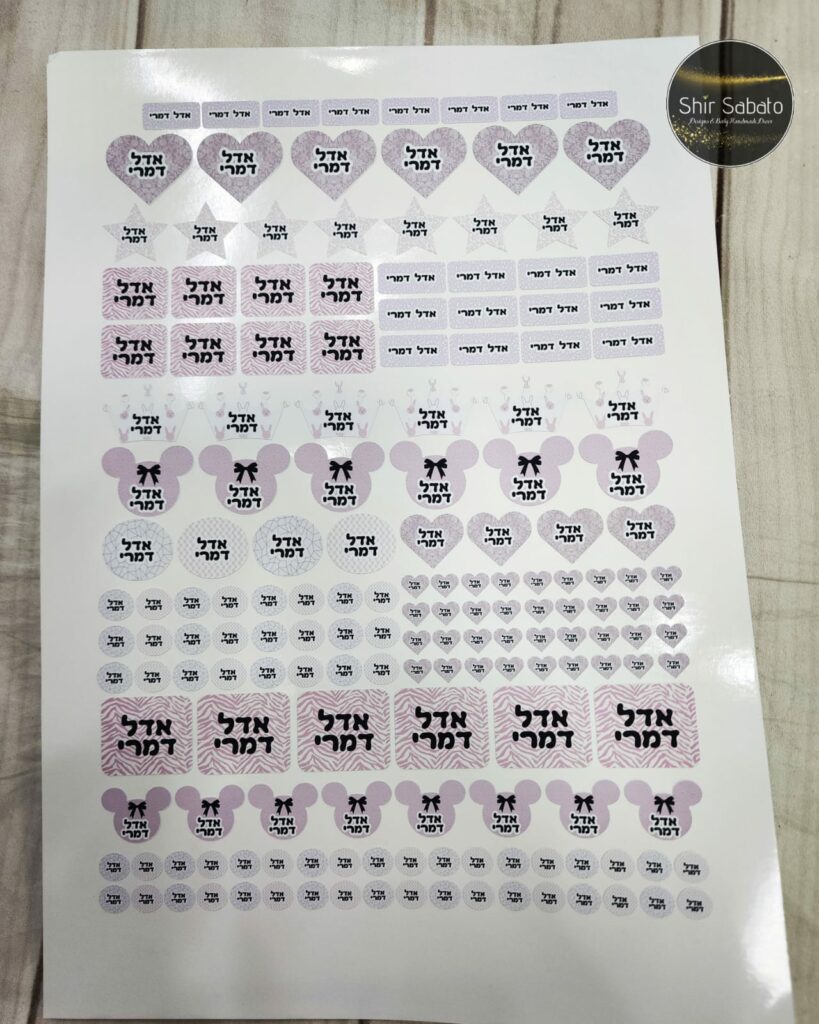 מדבקות עם שם הילדה, אינן יורדות ואינן מתקלפות במים. מתאימות לבקבוקים, קופסאות תמ"ל, מגבונים,מחברות, ספרים, צעצועים, מגירות ועוד. ניתן להוסיף תמונה של הילד ללא עלות נוספת. במידה ואתם מעוניינים בתמונה, כתבו זאת בהערות ואנו ניצור עמכם קשר. שימו לב- * המדבקות לא נגד שריטות * יש לתת למדבקה להתייבש ולהתקבע לפחות 24 שעות לפני מגע עם מים * יש לנקות את המוצר היטב משומניות ורטיבות – לפני ההדבקה המוצר צריך להיות נקי ויבש לגמרי