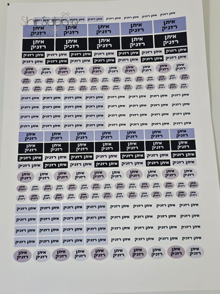 מדבקות עם שם הילד, אינן יורדות ואינן מתקלפות במים. מתאימות לבקבוקים, קופסאות תמ"ל, מגבונים,מחברות, ספרים, צעצועים, מגירות ועוד. ניתן להוסיף תמונה של הילד ללא עלות נוספת. במידה ואתם מעוניינים בתמונה, כתבו זאת בהערות ואנו ניצור עמכם קשר. שימו לב- * המדבקות לא נגד שריטות * יש לתת למדבקה להתייבש ולהתקבע לפחות 24 שעות לפני מגע עם מים * יש לנקות את המוצר היטב משומניות ורטיבות – לפני ההדבקה המוצר צריך להיות נקי ויבש לגמרי