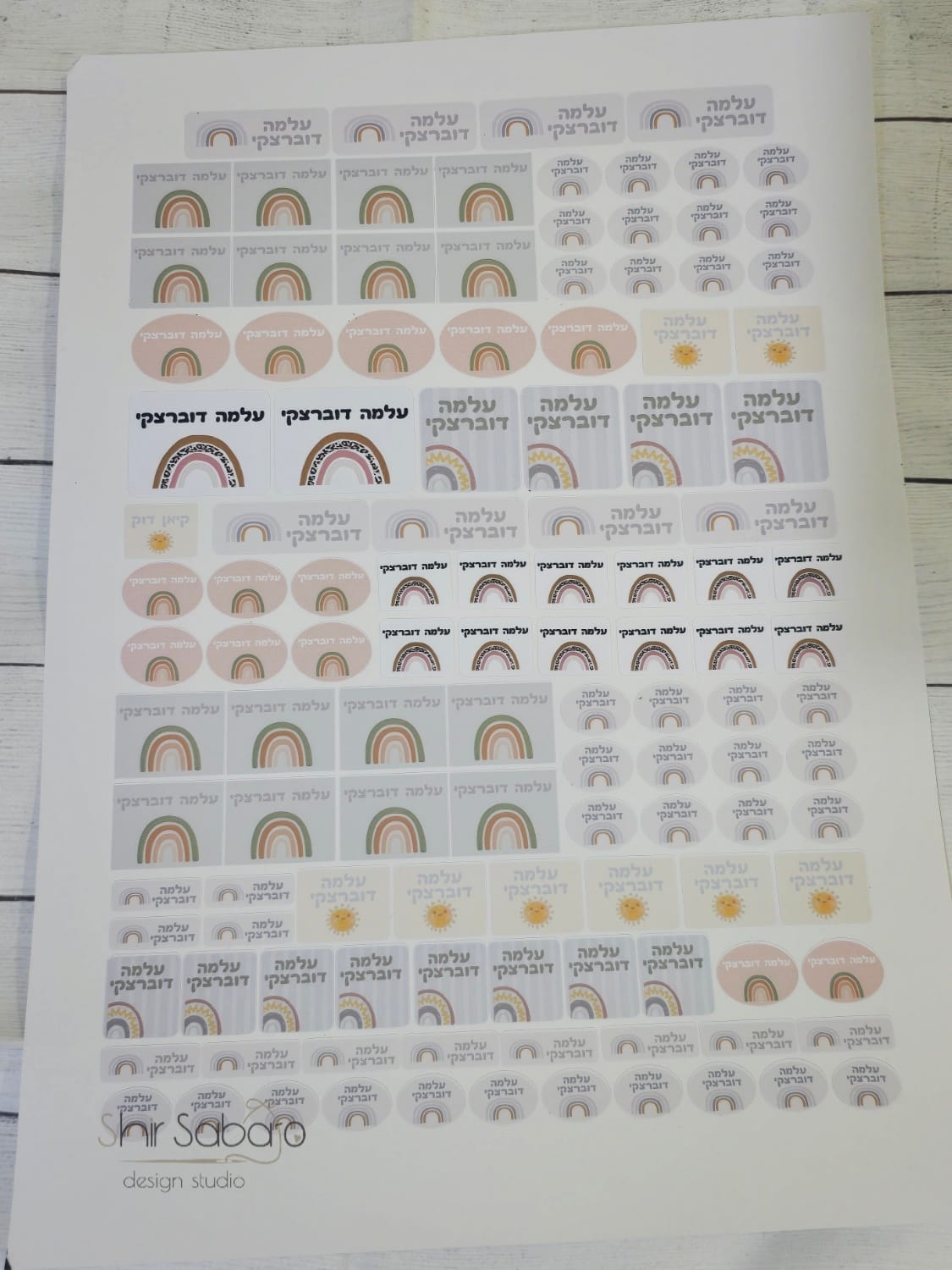מדבקות עם שם הילדה, אינן יורדות ואינן מתקלפות במים. מתאימות לבקבוקים, קופסאות תמ"ל, מגבונים,מחברות, ספרים, צעצועים, מגירות ועוד. ניתן להוסיף תמונה של הילד ללא עלות נוספת. במידה ואתם מעוניינים בתמונה, כתבו זאת בהערות ואנו ניצור עמכם קשר. שימו לב- * המדבקות לא נגד שריטות * יש לתת למדבקה להתייבש ולהתקבע לפחות 24 שעות לפני מגע עם מים * יש לנקות את המוצר היטב משומניות ורטיבות – לפני ההדבקה המוצר צריך להיות נקי ויבש לגמרי * אין להשאיר את הילד ללא השגחה כשהמדבקה מודבקת על מוצר בהישג ידו.