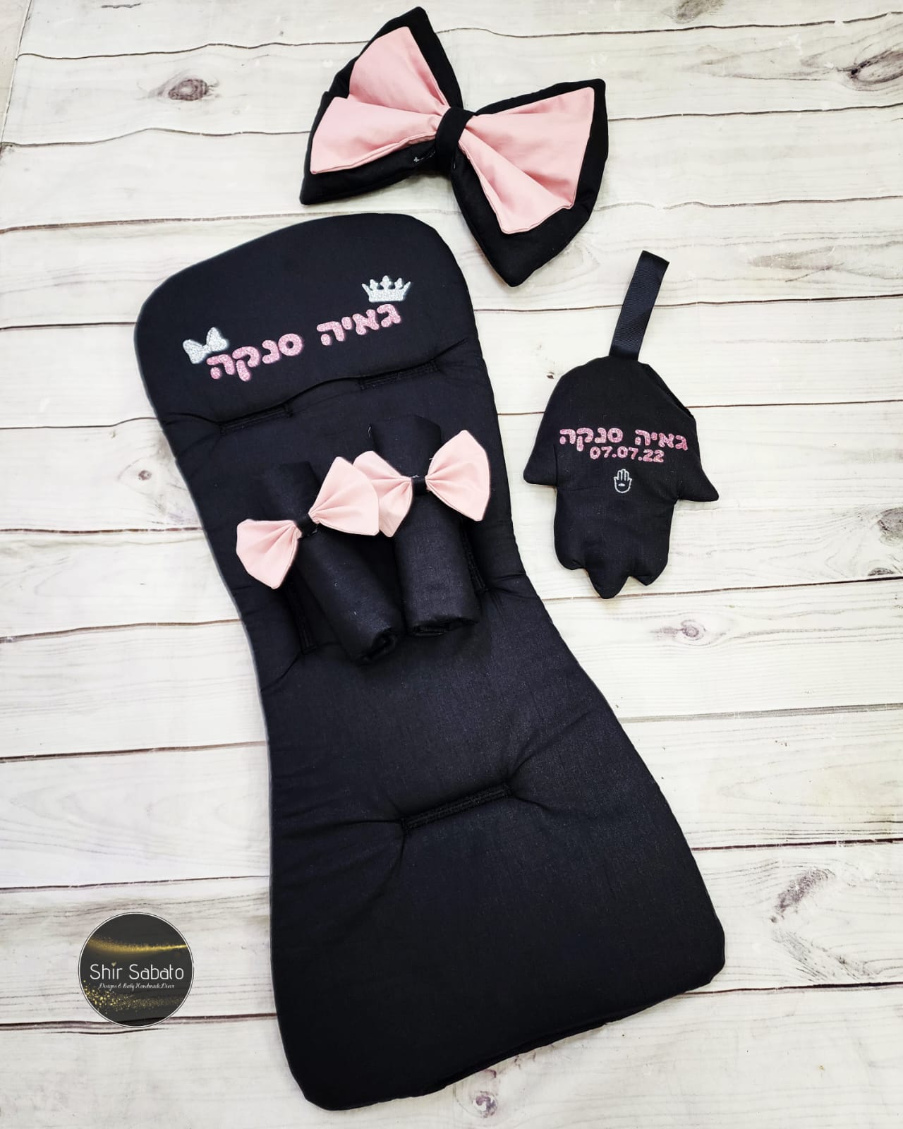 סט לעגלה עם שם הילד המזרן מתאים לכל עגלות הטיולון הסטנדרטיות מלבד עגלות עם קידון קידמי (לדוגמא עגלת בובו ). המזרן מתלבש בקלות על עגלת הטיולון באמצעות חריצים דרכם משחילים את הרצועות של העגלה. למזרן יש מילוי ספוגי יציב בעובי 2 ס"מ אשר מקנה את הנוחות המירבית לתינוק. המזרן מגן על העגלה, שומר עליה נקייה ונותן לה מראה חדש עכשווי,אופנתי ומרענן לאורך זמן. הסט דו צדדי, נתפר בעבודת יד, מבדים 100% כותנה. מידת הסט :35/75 ס"מ.